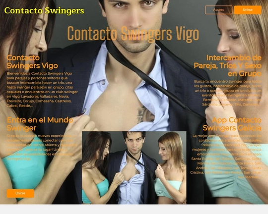 Contactos Swinger v para parejas y personas solteras que buscan hacer un trío, intercambio de pareja o sexo en grupo en Vigo, Lavadores, Valladares, Navia, Freixeiro, Corujo, Comesaña, Castrelos, Cabral, Beade,...Encuentra parejas y solteros que quieren intercambiar pareja para relaciones sexuales o tener sexo en grupo. Desde el Soft Swap hasta el Full Swap en fiestas swinger, exhibicionismo y voyeurismo, citas swinger, juegos de rol, sexo en lugares públicos en el mejor ambiente swinger. Contacto Swinger Vigo, parejas liberales, tríos, sexo en grupo Pontevedra, intercambio de pareja, Galicia, parejas swinger, Alcabre, Bembrive, Candeán, Matamá, Oya, Sárdoma, Sayanes, Teis, Zamanes, singles, relaciones sexuales, soft swap, full swap, fiestas swinger, exhibicionismo, sexo en lugares públicos, swinger party,, sexo ocasional, citas swinger, ambiente swinger.